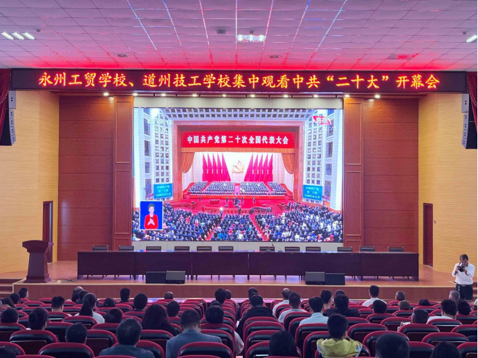 ——永州工贸学校全体教职员工集中收看党的二十大开幕会直播