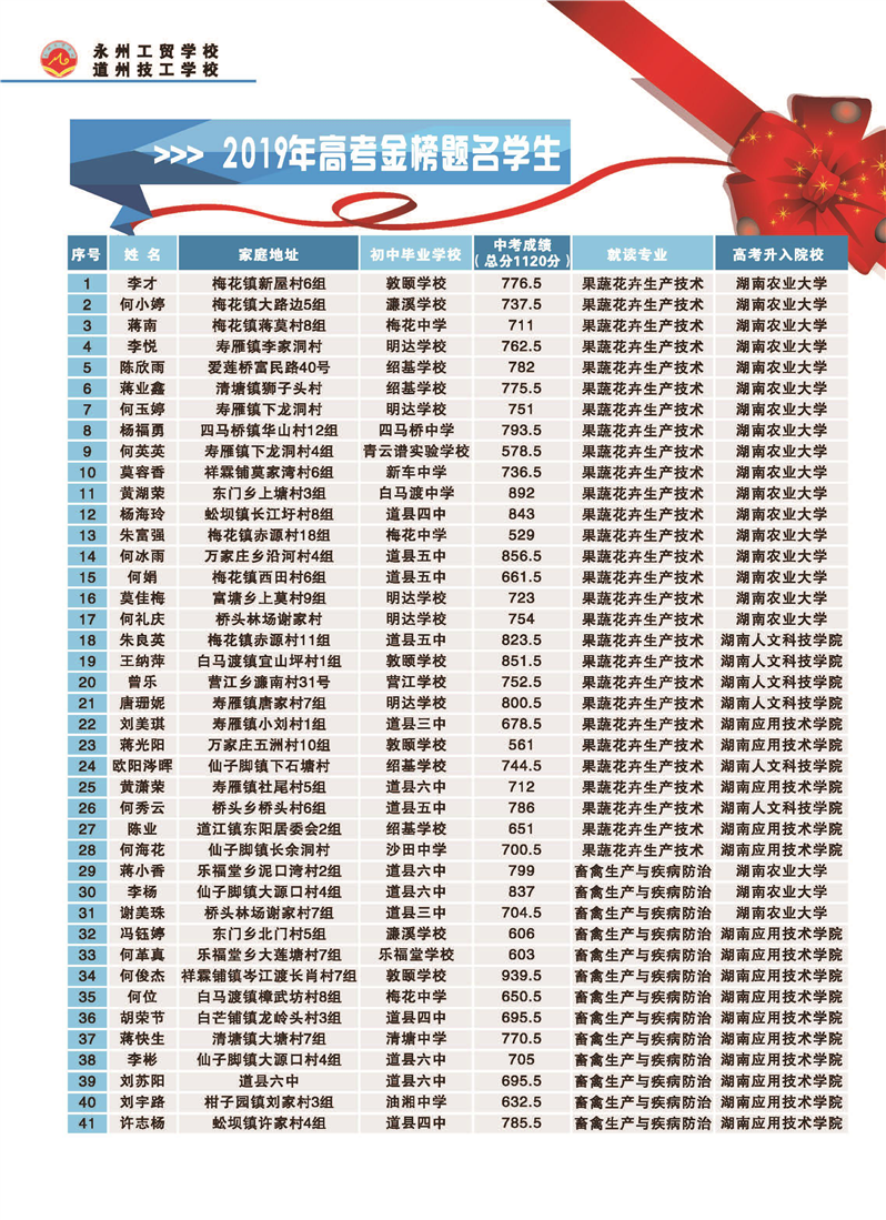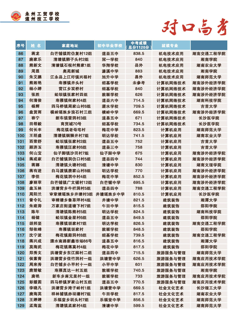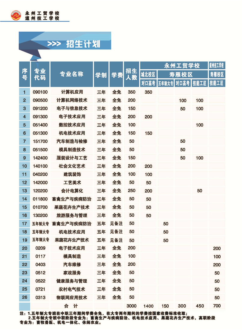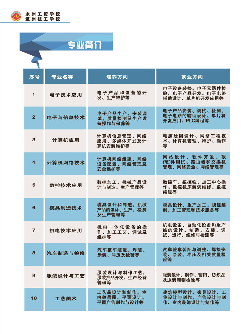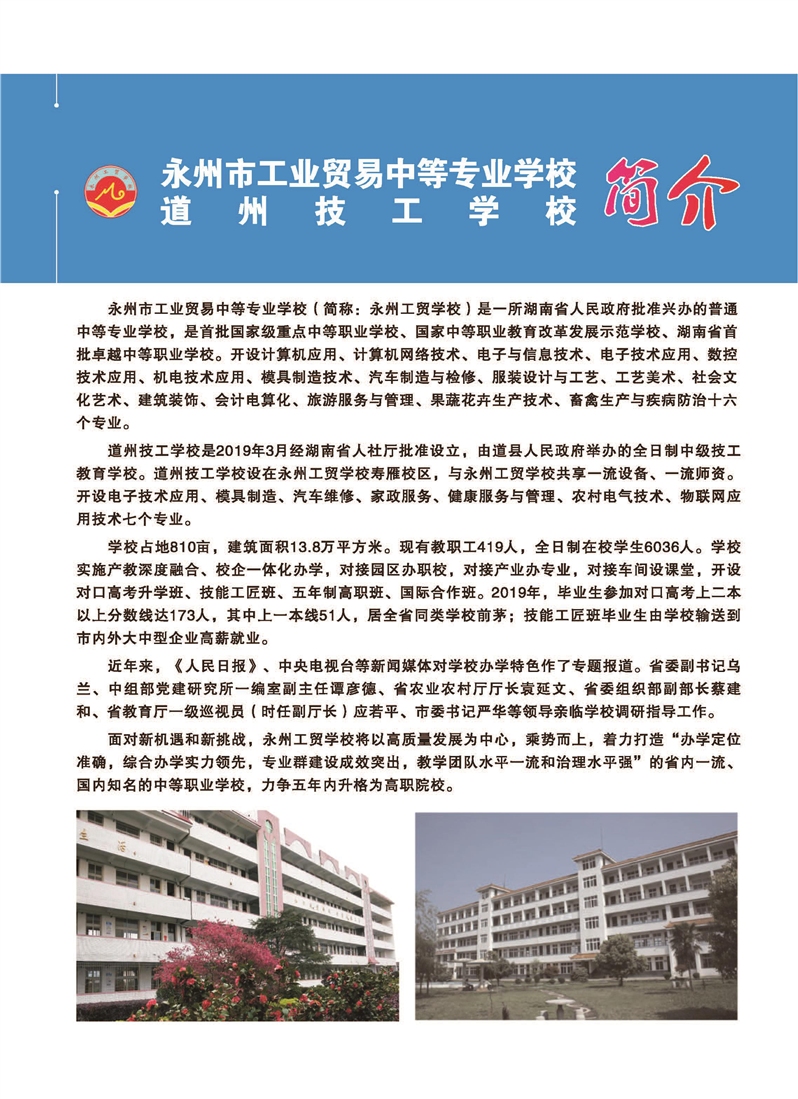 湖南省永州工贸学校2020年秋季招生简章
